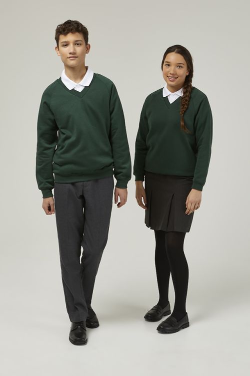 The Bottle Green Trutex V-Neck School Sweatshirt is a smart, durable and comfortable choice for everyday school wear. Designed with both style and practicality in mind, this unisex school jumper features a classic V-neck shape that layers perfectly over shirts and polos, making it ideal for a neat and professional uniform look.