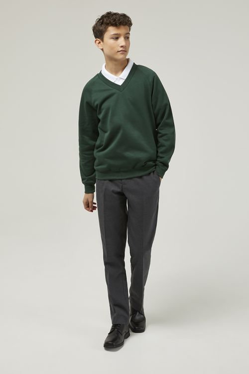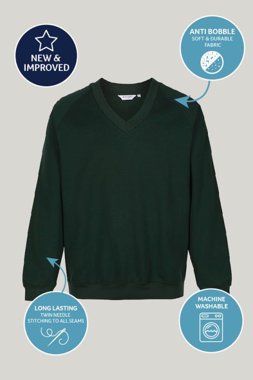 This Bottle Green Trutex v-neck sweatshirt is perfect for both boys and girls, this Trutex V-neck sweatshirt is a reliable and long-lasting addition to any school uniform.