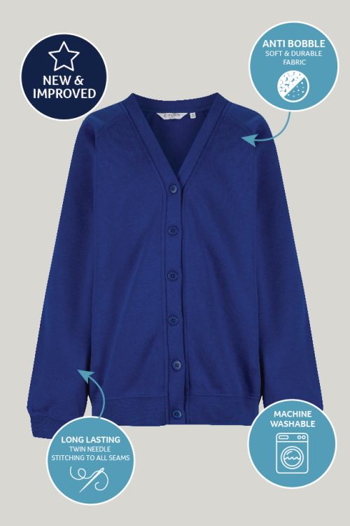 Available in a wide range of colours and sizes from age 2-3 up to Medium adults, this versatile school sweat Cardigan is built to last the full school year and beyond – offering excellent value for money as your child grows.