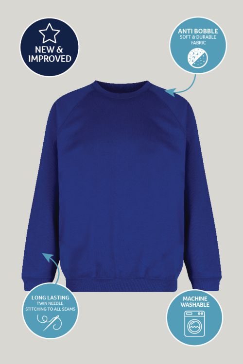 Trutex Crew Neck School Sweatshirt in Cobalt – Reliable School Jumper for Everyday Wear