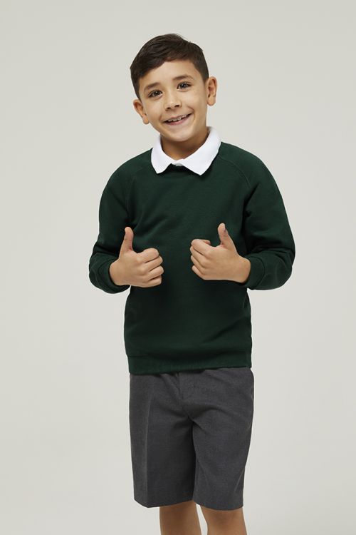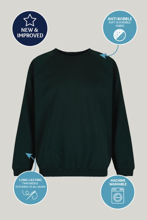 Forest Green Trutex Crew Neck School Sweatshirt – Durable Unisex School Jumper | Soft Cotton-Rich Uniform Sweatshirt