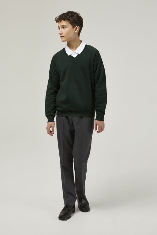 The Forest Green Trutex V-Neck School Sweatshirt is a smart, durable and comfortable choice for everyday school wear. Designed with both style and practicality in mind, this unisex school jumper features a classic V-neck shape that layers perfectly over shirts and polos, making it ideal for a neat and professional uniform look.