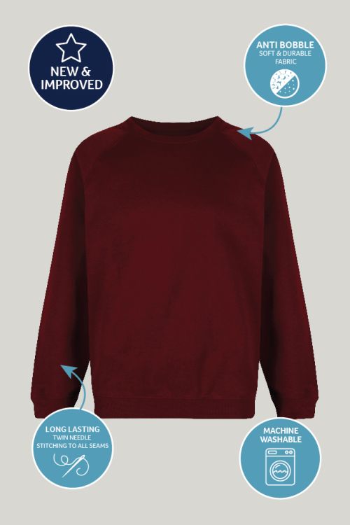 Trutex Crew Neck School Sweatshirt in Maroon – Reliable School Jumper for Everyday Wear