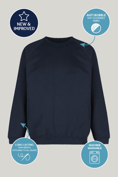 Navy Trutex Crew Neck School Sweatshirt – Durable Unisex School Jumper | Soft Cotton-Rich Uniform Sweatshirt