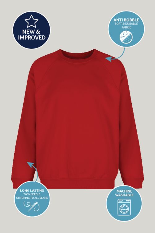 Trutex Crew Neck School Sweatshirt in Scarlet Red – Reliable School Jumper for Everyday Wear