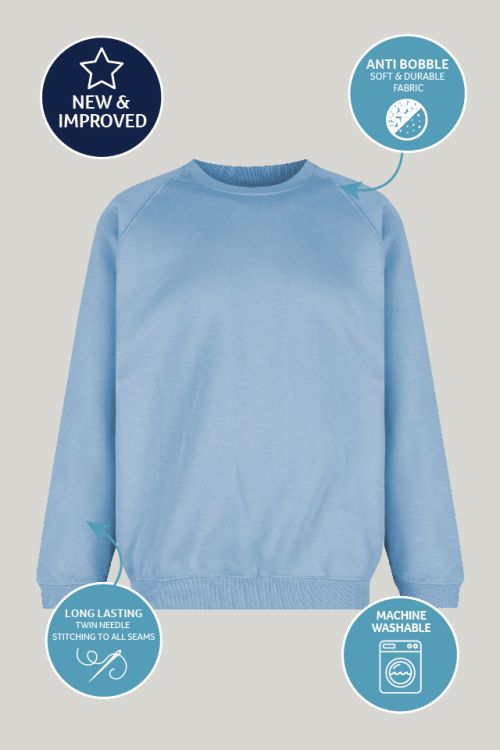 Trutex Crew Neck School Sweatshirt in Sky – Reliable School Jumper for Everyday Wear